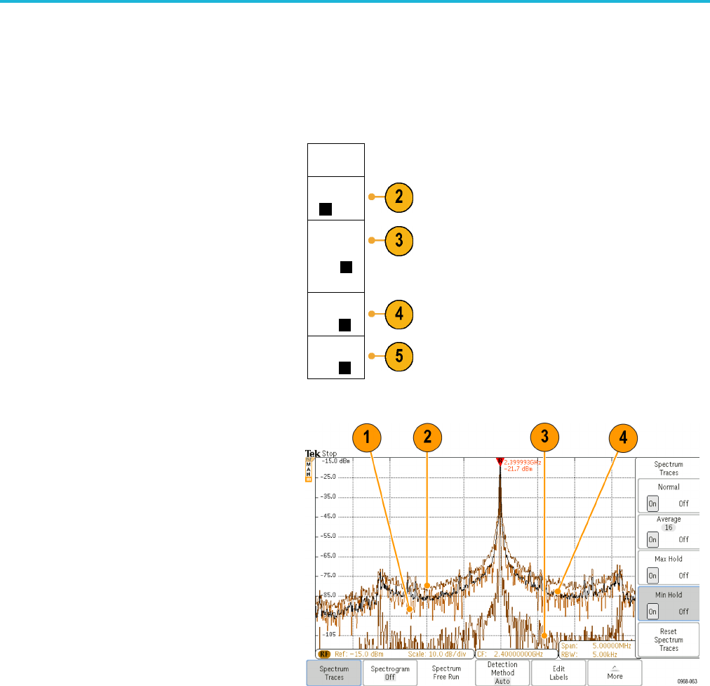 The frequency domain window supports four spectrum traces. You may turn each of these traces on and off independently.