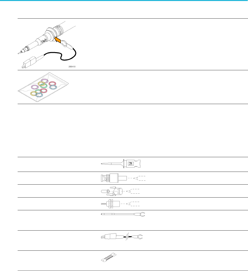 The accessories shown below are available for the probes and are rated 30 V unless indicated otherwise.