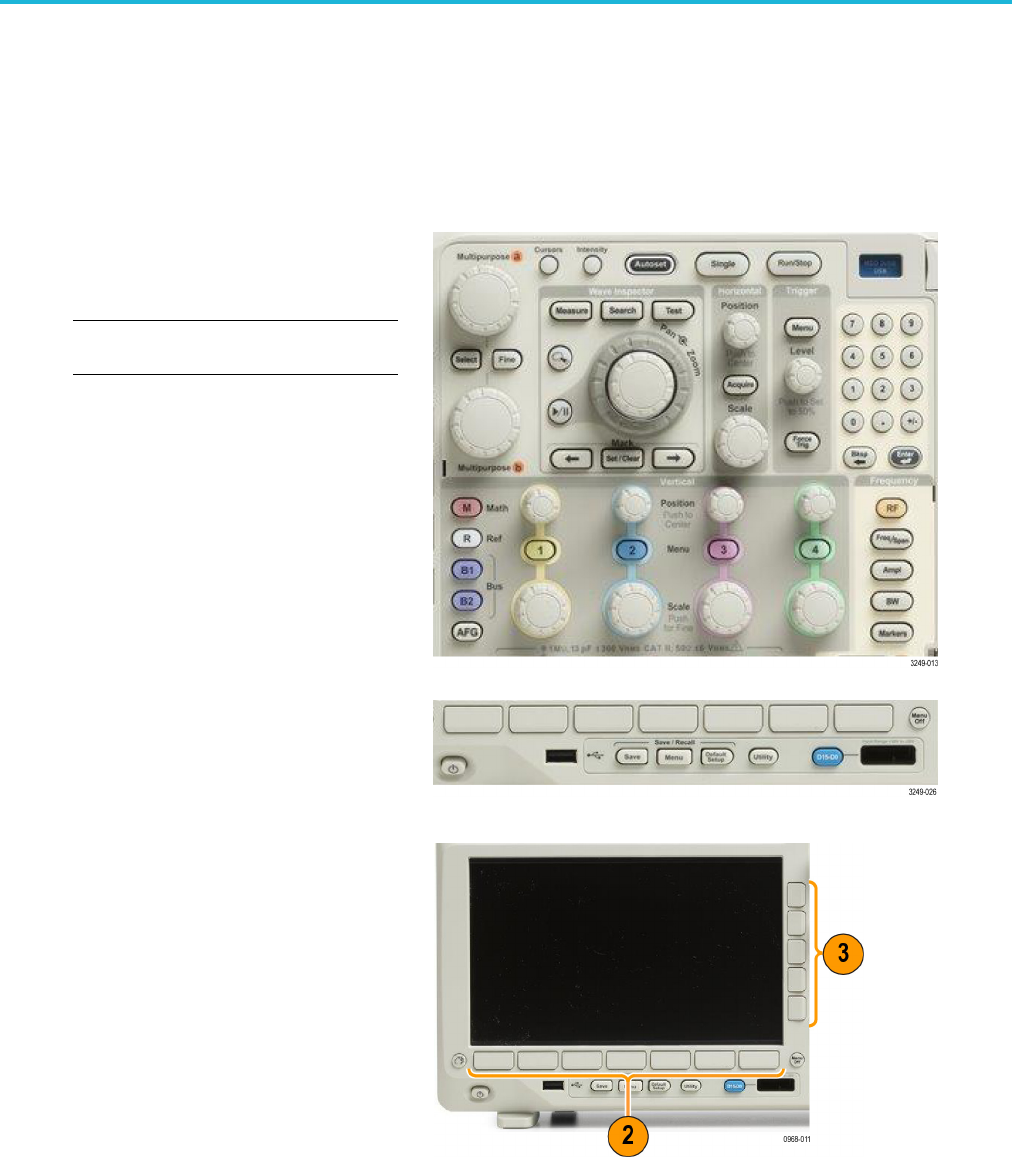 The front panel has buttons and controls for the functions that you use most often. Use the menu buttons to access