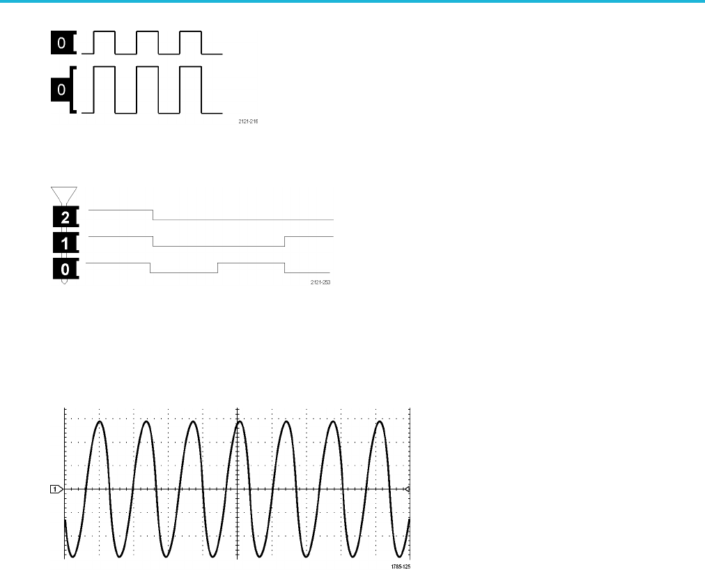19. For analog channels, the waveform baseline indicator shows the zero-volt level of a waveform, assuming you have not
