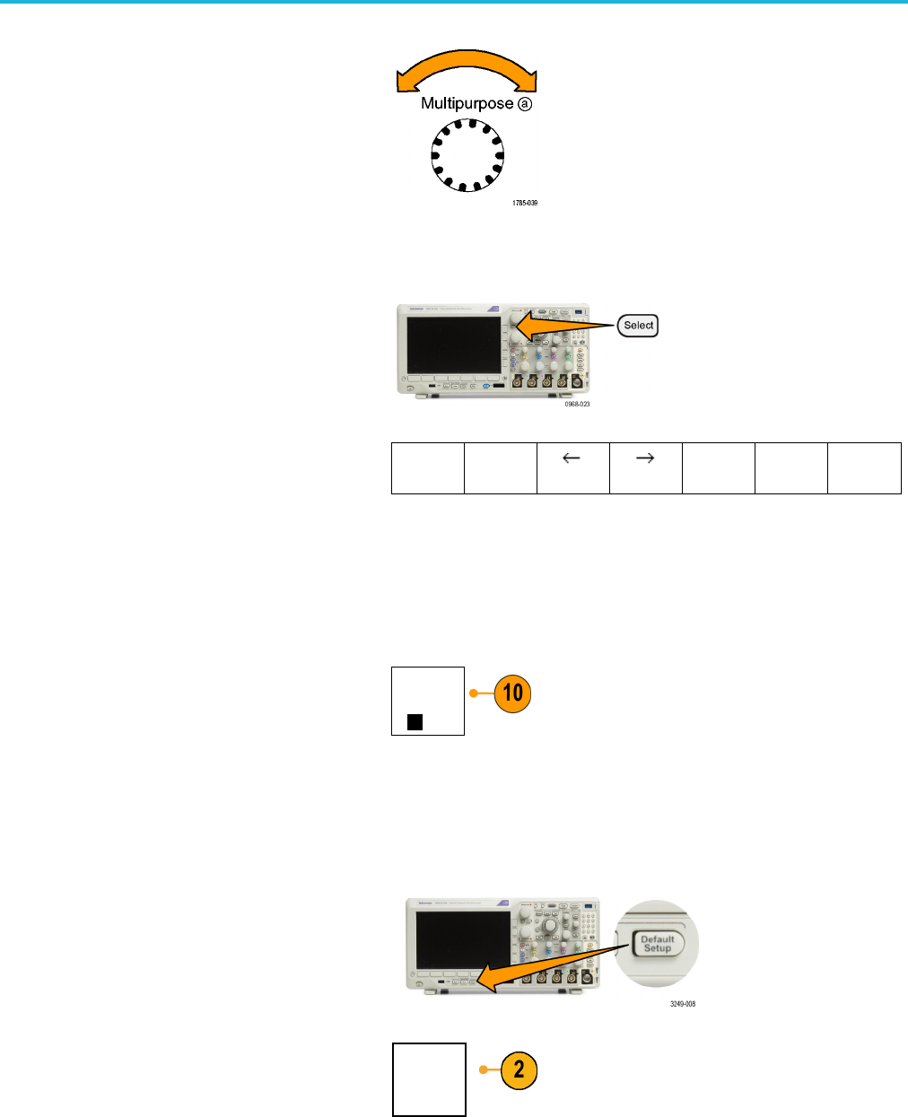 To return the oscilloscope to its default settings: