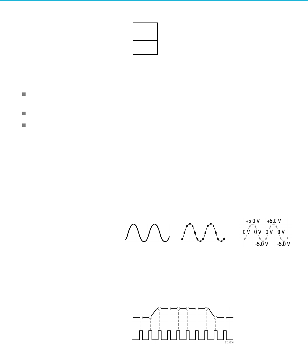 signal can be displayed, it must pass through the input channel where it is scaled and digitized. Each channel