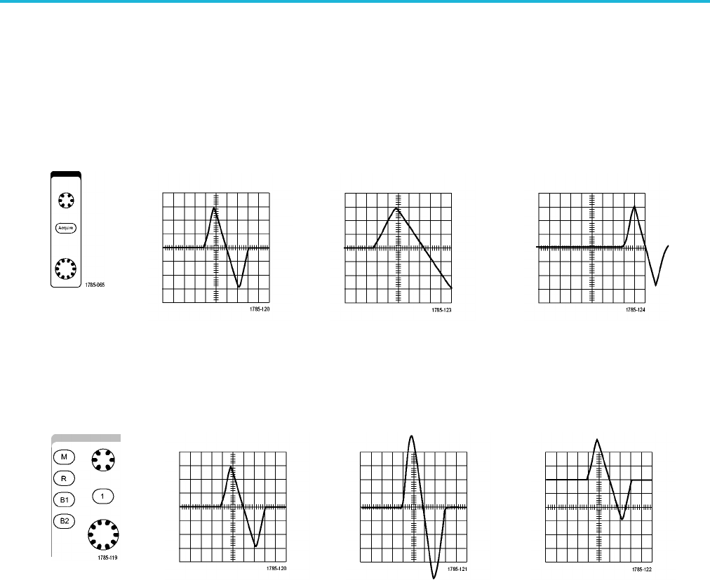 Use the horizontal controls to adjust the time base, adjust the trigger point, and to examine waveform details more closely.