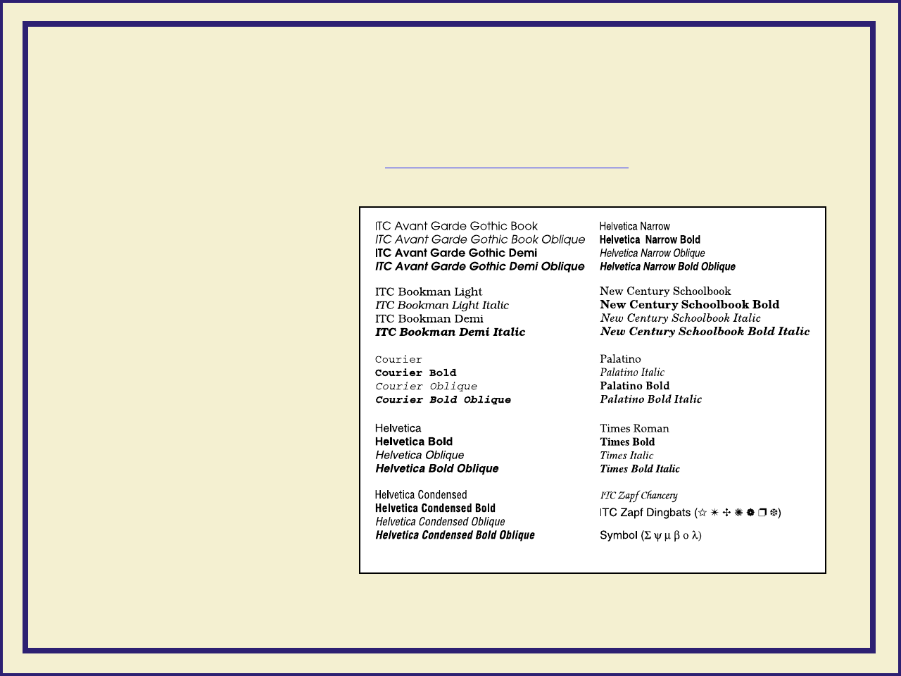 If you have the printer’s Extended Features option,22 additional fonts are included
