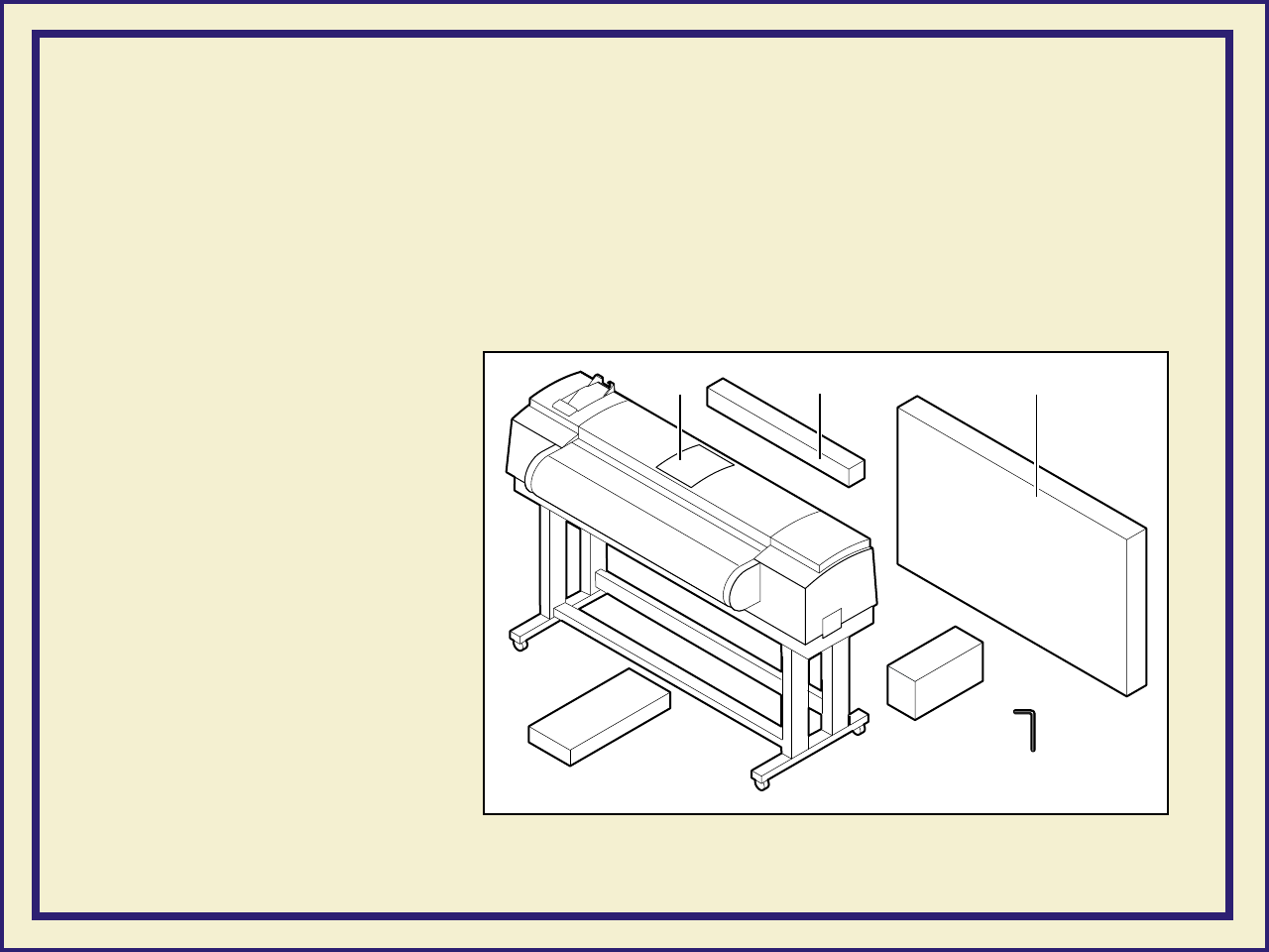The printer and its accessories are shipped in a single box on a pallet. If you