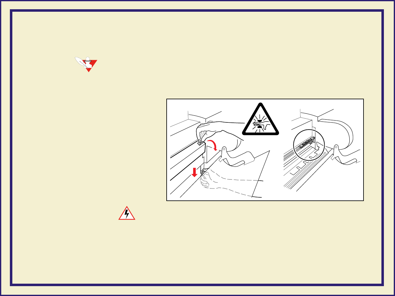When lowering the exit cover, be careful not to pinch your hand between the paper