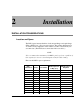 2 Installation INSTALLATION CONSIDERATIONS Location and Space The DNI-3 panel mounts flush into both unequal-flange and equal-flange (EIA or WECO) 23" (58.4 cm) network bays. The primary limiting factor of a DNI-3 rack configuration is the number of cables a network bay can accommodate. (The DNI can accommodate 1280 coax cables.) NOTE Telect recommends a maximum of 14 DNI-3 panels per bay, regardless of bay capacity, for easy access and adequate room for cable routing.