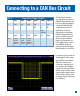 Connecting to a CAN Bus Circuit Pin # 2 Transceiver/ Trigger Coupler 251 1041 1050 1054 CANL CANL CANL CANL 3 GND 4 5790c 10011S CANL VB- VB- 100 Ω (HS Mode) 7 CANH CANH CANH Notes Connect 120 Ω between pins 2 + 7 Connect 120 Ω between pins 2 + 7 Connect 120 Ω between pins 2 + 7 CANH CAN CANH All of the normal connection rules apply when connecting the CANbus TD Trigger Module to your bus. The bus must be terminated correctly,and CANH,CANL,GND, etc.