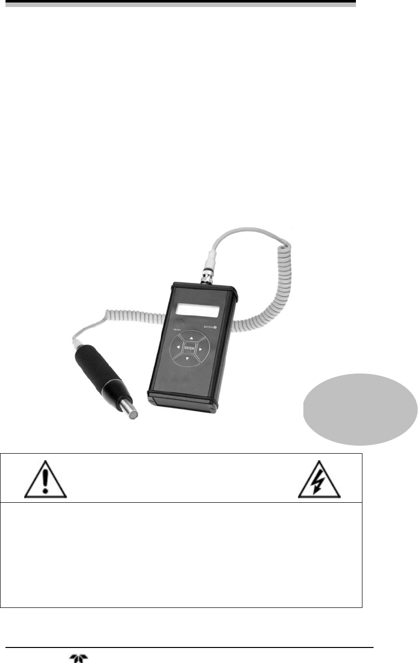Handheld Hydrogen Leak Detector IF YOU USE THE ANALYZER IN A MANNER OTHER THAN THAT FOR WHICH IT WAS INTENDED, UNPREDICTABLE BEHAVIOR COULD RESULT POSSIBLY ACCOMPANIED WITH HAZARDOUS CONSEQUENCES. This manual provides information designed to guide you through the installation, calibration operation and maintenance of your new analyzer. Please read this manual and keep it available.