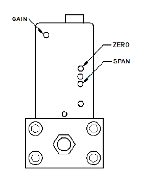 5. Adjust Span pot until the indicated flow reads full scale (5.00VDC or 20 mA). Perform this