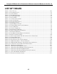 Teledyne API Model 401 O3 Photometric Calibrator Instruction Manual, 01124, Rev. J2 LIST OF TABLES TABLE 1-1: TEST VALUES ....................................................................................................................... 1-21 TABLE 2-1: PASSWORD LEVELS ............................................................................................................... 2-3 TABLE 2-2: SYSTEM MODES .................................................................................................