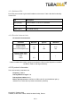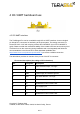 4.2.1 Backboard LEDs Five LEDs are mounted to give visual feedback on the sensor. Table 2 lists the functionality of each LED: LED Description PWR (orange) Power indicator, on when 5V connected Rx/Tx (red/green) UART receive and transmit indicators LED 0 / LED 1 For internal use only 4.2.2 Electrical characteristics DC electrical characteristics Parameter Minimum Typical* Maximum Power supply Voltage input (V) Current consumption (mA) 4.75 130 5 *180 5.