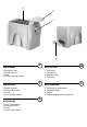 2 3 1 4 DESCRIZIONE I 1. Manopola Timer 2. Sedi di cottura 3. Pinze 4. Cassetto raccogli briciole DESCRIPTION 1. Pomo Temporizador 2. Sedes de cocción 3. Pinzas 4. Cajón recoge migas GB 1. Timer knob 2. Cooking slot 3. Sandwich cage 4. Crumb tray F 1. Molette du timer 2. Plaques de cuisson 3. Pinces 4. Tiroir ramasse miettes DESCRIPCIÓN DESCRIPTION BESCHREIBUNG 1. Drehknopf der Zeitschaltuhr 2. Toasteröffnungen 3. Zangen 4.