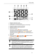 3 Opis produktu 1 2 3 4 5 6 7 Program pomiarowy w toku Program pomiarowy zakończony Oczekiwanie na uruchomienie programu pomiarowego Najwyższa zapisana wartość pomiarowa Najniższa zapisana wartość pomiarowa Wartość pomiarowa Informacje o statusie: kryterium uruchomienia zaprogramowana data / godzina / znacznik czasu, xyz osie pomiarowe pomiaru przyspieszenia, Alarm przekroczono ustawiony(-e) limit(-y), nie przekroczono ustawionego(-ych) limitu (-ów) 8 Jednostki 9 Pojemność baterii: wystarczająca, częściow