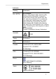 3 Specifications IC Warnings This instrument complies with Part 15C of the FCC Rules and Industry Canada RSS-210 (revision 8). Commissioning is subject to the following two conditions: (1) This instrument must not cause any harmful interference and (2) this instrument must be able to cope with interference, even if this has undesirable effects on operation. Cet appareil satisfait à la partie 15C des directives FCC et au standard Industrie Canada RSS-210 (révision 8).
