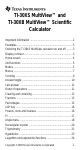 TI-30XS MultiView™ and TI-30XB MultiView™ Scientific Calculator Important information ............................................................ 2 Examples .............................................................................. 3 Switching the TI-30XS MultiView calculator on and off ........ 3 Display contrast .................................................................... 3 Home screen ........................................................................ 4 2nd functions ...................