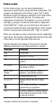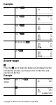 %t STATS 1: 1-Var Stats 2: 2-Var Stats 3: StatVars This menu option displays after you calculate 1-var or 2-var stats. StatVars menu: 1: n 2: Ï 3: Sx Etc. See StatVar values for full list. % Reset 1: No 2: Yes %h Recall Var 1: x = 2: y = 3: z = 4: t = 5: a = 6: b = 7: c = %{ Clear Var 1: Yes 2: No Scrolling !"#$ Press ! or " to place the cursor horizontally over the expression entered. Press % ! or % " to move the cursor directly to the beginning or end of the expression.