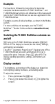 F ¶D 4%N1$2" %j< q1 8 2 T 1 8 3 $ 4 Examples (MathPrint™ < mode only) (MathPrint mode only) qM5 T%b5 FU4 D 1 ED 6 E$2 D 1 E< Percentages %_ %R To perform a calculation involving a percentage, press % _ after entering the value of the percentage. To express a value as a percentage, press %R after the value. Example 2 % _ V 150 < 1 q 5 "% R < ³ Problem A mining company extracts 5000 tons of ore with a concentration of metal of 3% and 7300 tons with a concentration of 2.3%.