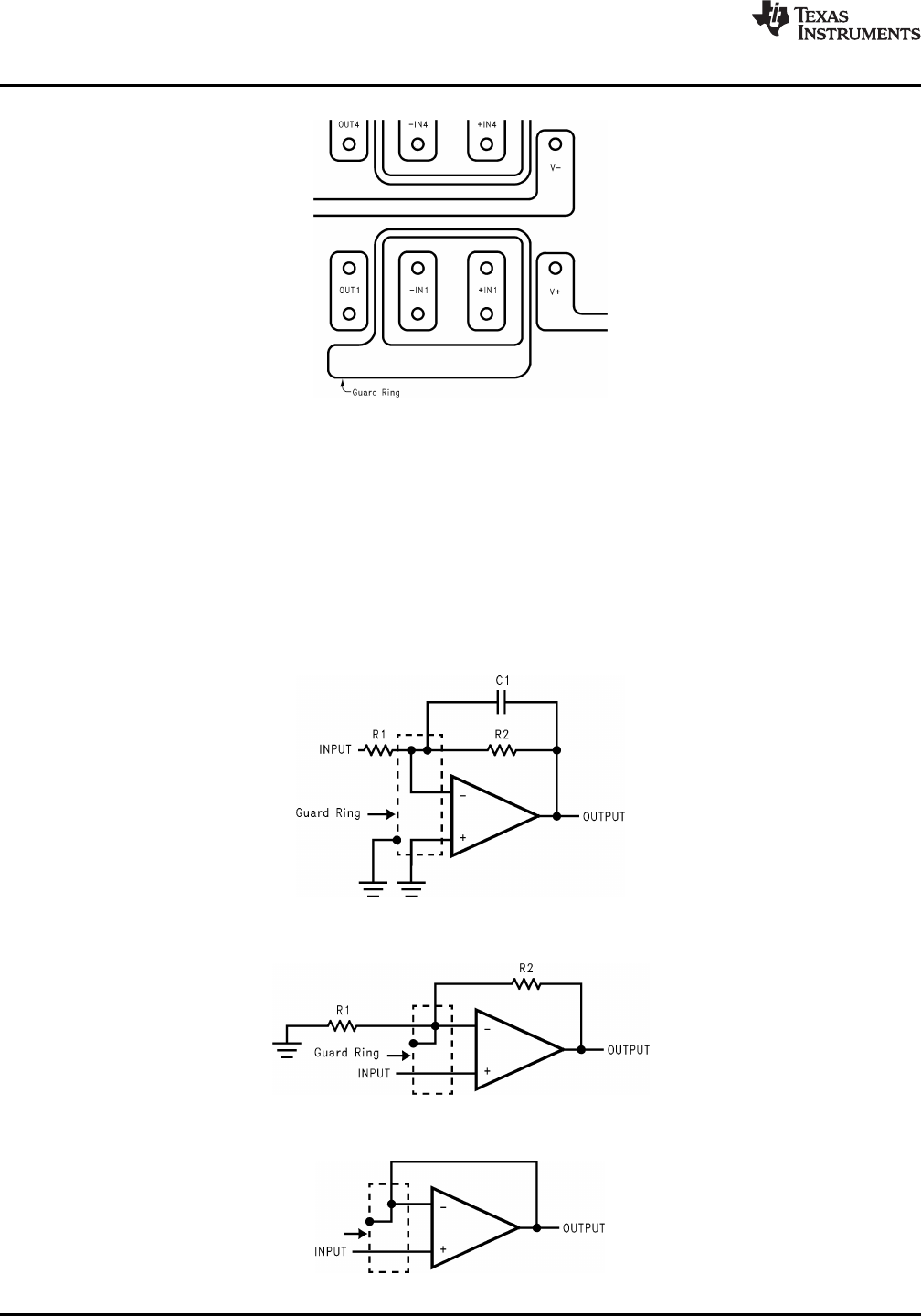 inputs, as in Figure 30. To have a significant effect, guard rings should be placed on both the top and bottom of