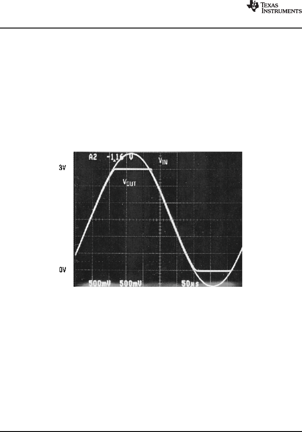 An input voltage signal exceeds the lmc6482 power supply voltages with no output phase inversion.