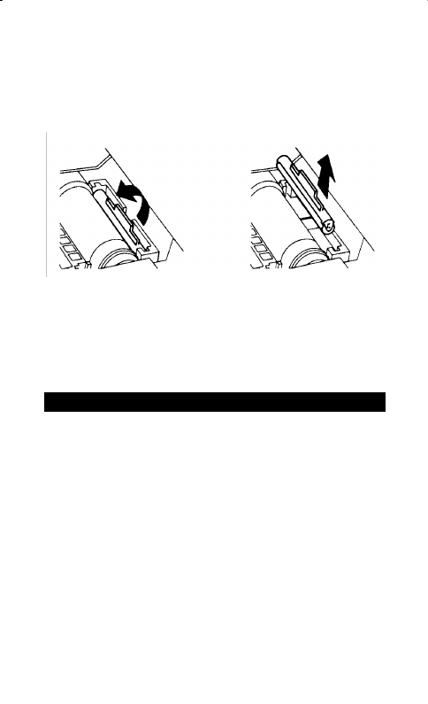 3. Lift the removal tab on the old ink roller and remove the roller, as