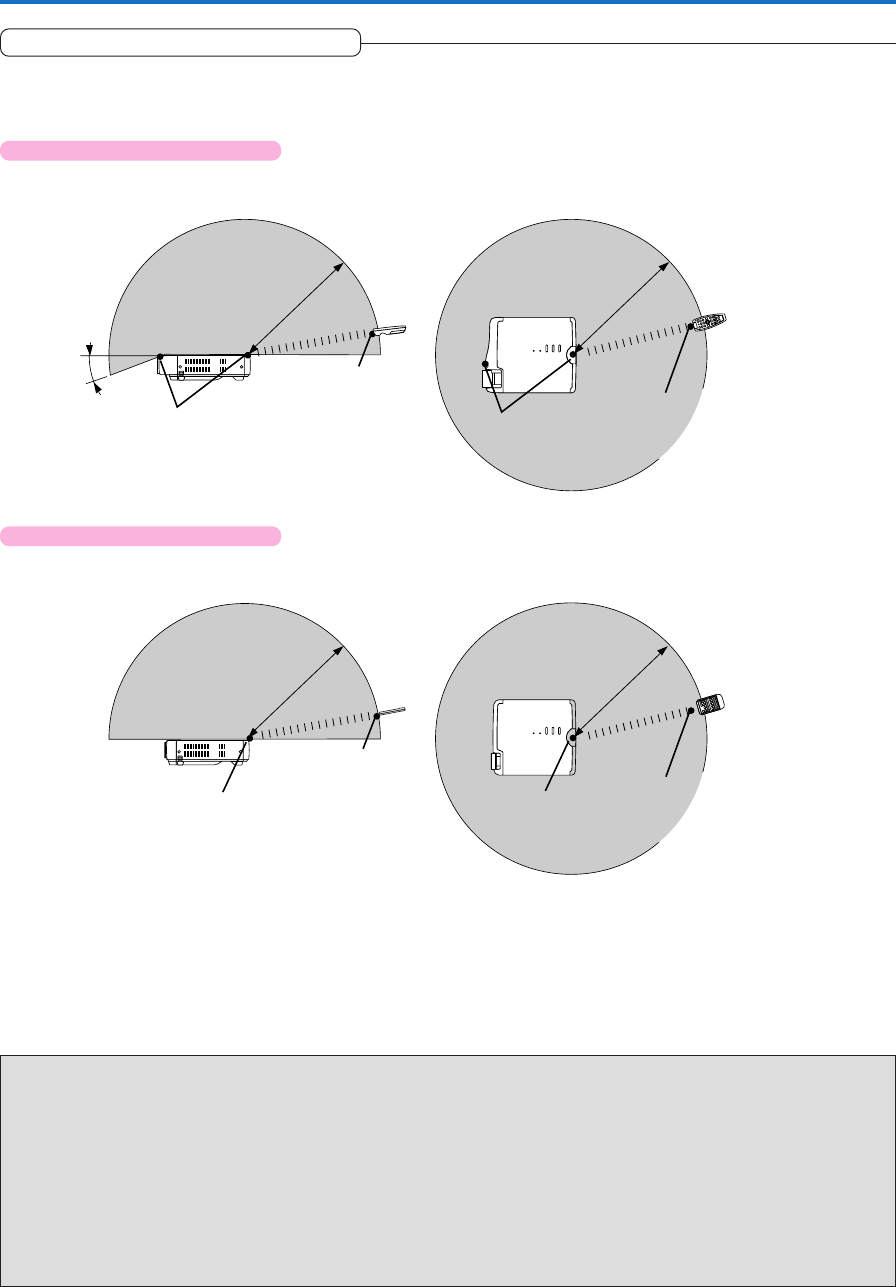 Reception of the remote control signal should generally be possible within the range illustrated below.