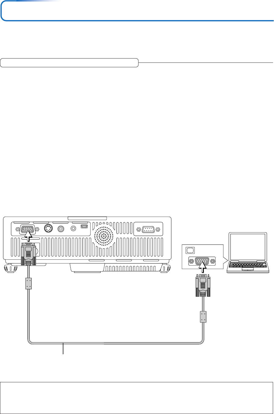 • When making connections with the RGB connector of the projector, please make the connection via the supplied RGB signal