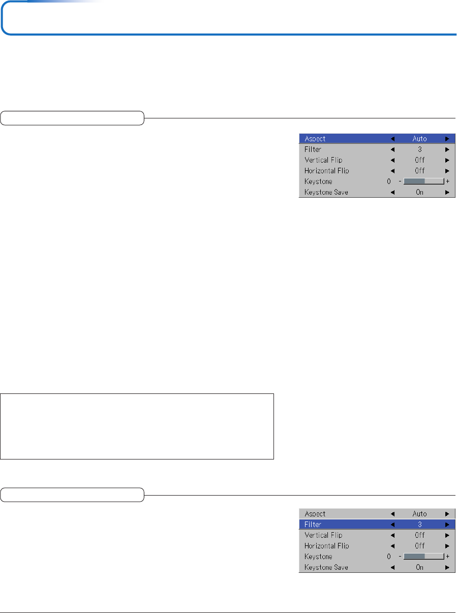 • Perform this operation while projecting the picture for which the adjustment/setting will be made.