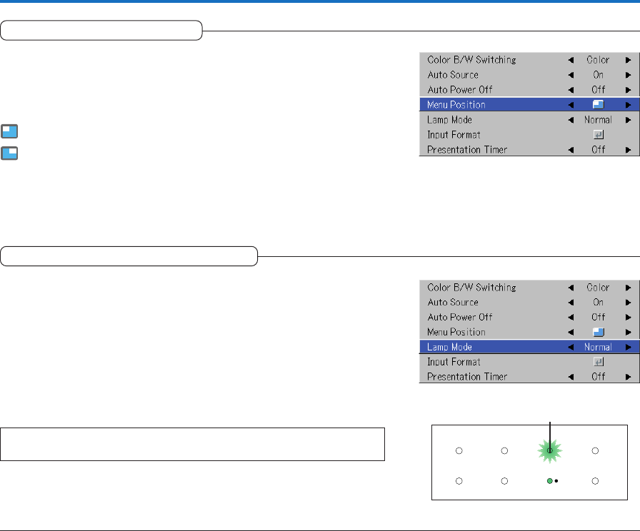 Eco ............. The lamp brightness is set to 80% and the lamp life is extended.