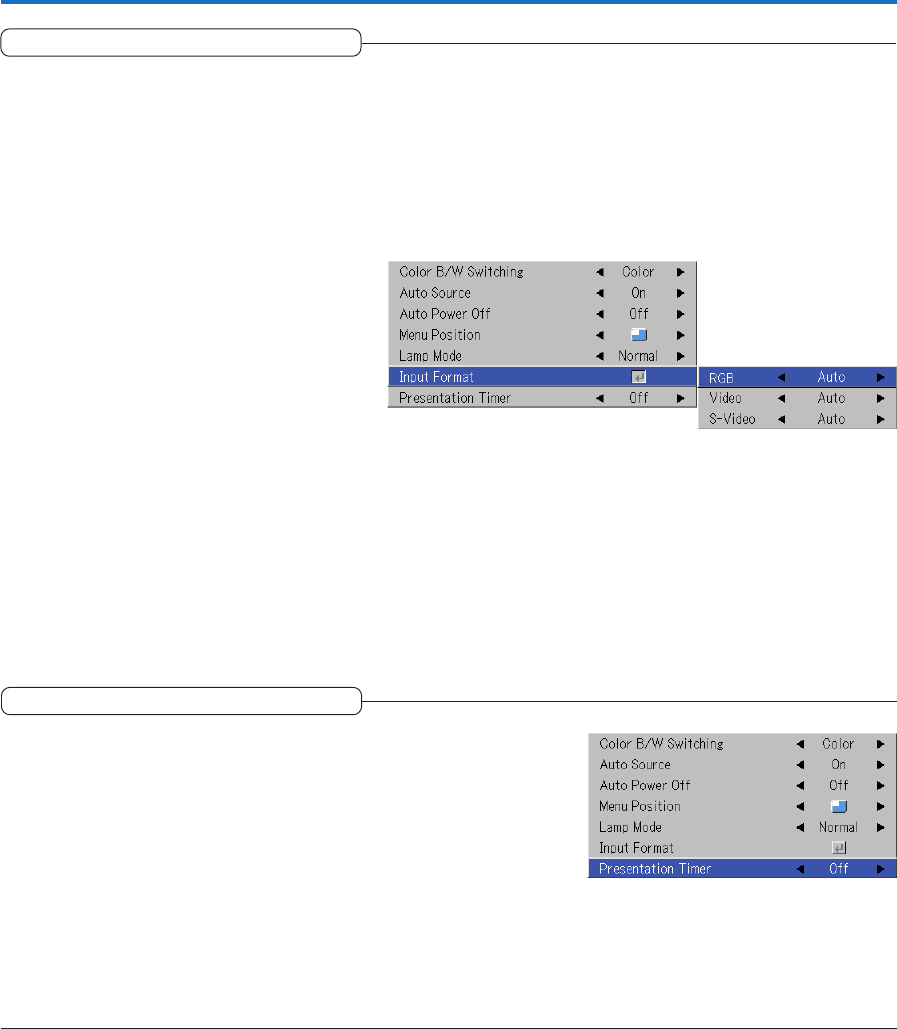 Select the item name “Input Format”, press the ENTER button, and the sub