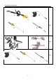 Udskiftning af snøre Fig. 4 1. 2. 3. 4. Tryk ind i hver side på selve snørehuset (tryk til og hold inde). Låget kan nu tages af. Afmonter selve rullen, ved at trække i den, Lad fjederen, blive på spolen. Fjern evt. rester af snøre. Tag ca. 3-4 m snøre (2,4 mm i diameter) og fold en løkke på midten Fastgør snøreløkken i hakket midt på spolen og vikle snøren pænt rundt om spolen i hver sin rille. Undgå at sno snøren. I bunden af spolen er pile som viser retningen, hvorpå snøren skal vikles rundt.