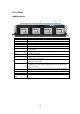 Front Panel N8900 series: Front Panel Item 1.Power Button 2.Power LED 3.System error LED 4.Mute button 5.USB Port 6. Locator button / LED 7. RST 8. LAN 9. BUSY 10.OLED 11.Up Button ▲ 12.Down Button ▼ 13.Enter Button 14.Escape Button ESC Description Power on/off N8900 Solid green: System is power on. Solid RED: System error. Mute the system fan alarm. USB 2.