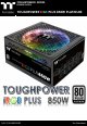 TOUGHPOWER i SERIES POWER SUPPLY TOUGHPOWER iRGB PLUS 850W PLATINUM Highlight Features 12 Addressable RGB LEDs at your Control Easily configure the RGB lighting and freely adjust fan speed with Thermaltake DPS G PC App and exclusively designed DPS G Riing RGB Mobile App. All Digital Platform for Exceptional Control of Ripple Noise and Voltage Regulation < 30mV Low Ripple Noise Design Top-end build quality with low ripple noise.