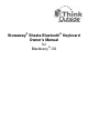 Keyboard Functions Hide Menu Closes the Menu and returns to the keyboard application screen. Disable Keyboard This breaks the connection between the keyboard and the BlackBerry. Options This allows the user to set the auto-reconnection setting. It ranges from ‘Don’t reconnect’ to ‘Non-stop’. Hot Keys This allows the user to assign applications to preset shortcut keys. For defaults see the section labeled Shortcuts. Key Typing Allows the user to set the Delay and Repeat rates.