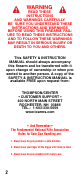 LIMITED WARRANTY CONT’D Some states do not allow the exclusion or limitation of incidental or consequential damages, so the above limitation or exclusion may not apply to you in whole or in part. Thompson/Center will not be responsible for: • Defects or malfunctions resulting from careless handling, unauthorized adjustments or modifications made or attempted by anyone other than a qualified gunsmith following Thompson/Center authorized procedures, or beyond the disassembly instructions in this manual.
