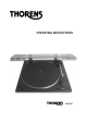 Contents Thorens Factory Warranty 2 Description 3 Setup 4 Preliminary operations 5 Belt and platter 5 Connection to mains 5 Connection to the amplifier or receiver 5 Speed selection and start 5 Manual start, cue control 5 Stop 5 Stylus DN 251 S 5 Technical data 6