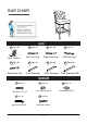 BAR CHAIR #1 1pc x2 #2 1pc x2 #3 1pc x2 #4 1pc x2 Left Front Leg Right Front Leg Left Rear Leg #5 1pc x2 #6 1pc x2 #7 1pc x2 #8 2pcs x2 Right Rear Leg Front Stretcher Back Stretcher Seat cushion Side Stretcher(L/R) #A 8pcs x2 #B 8pcs x2 #C 8pcs x2 Bolt Ø5/16" x 2-3/4" Lock Washer Ø5/16" Flat Washer Ø5/16" #D 1pc x2 Allen Wrench 5mm #E 8pcs x2 Screw M8 x 45mm 5/8