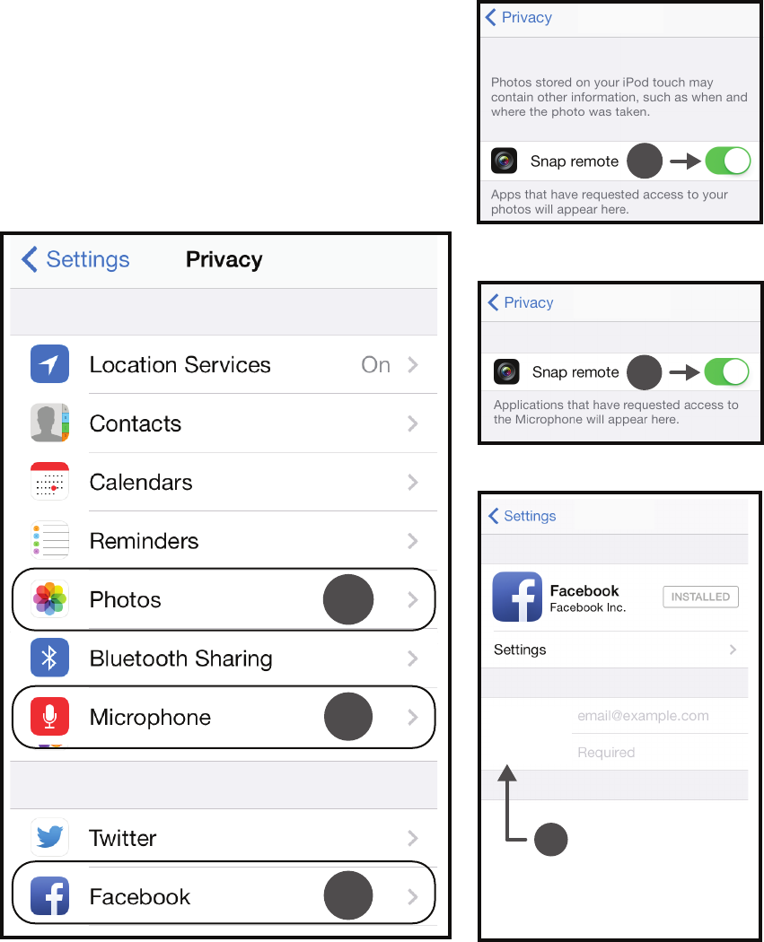 photo album, and facebook account. Please allow them all so as to enable Snap remote’s function can work properly.