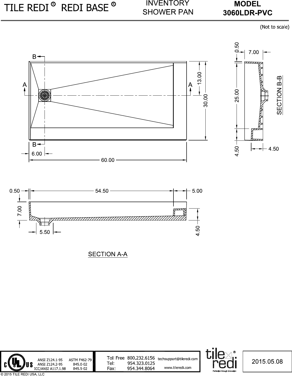 Redi Base 30 in. D x 60 in. W, Double Threshold Shower Base Left Drain