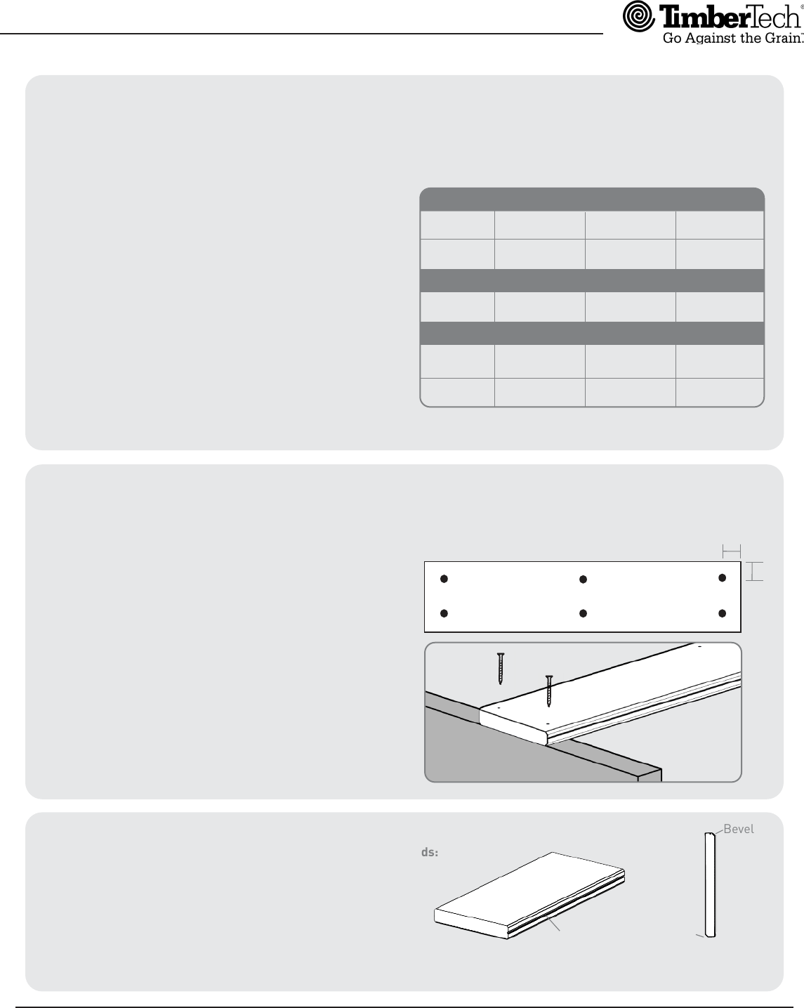 • TimberTech Cortex requires pre-drilling with a 3/16” bit for ALL
