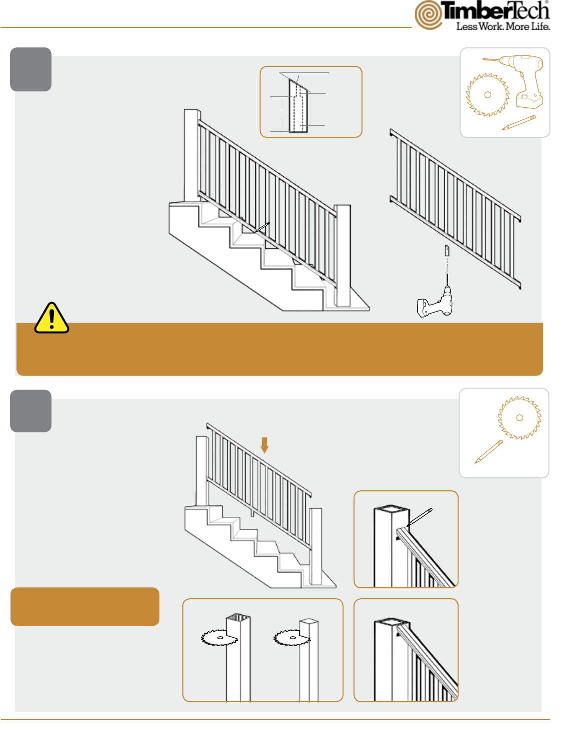 For sections 6’ to 8’: Space three Foot Blocks approximately at 1/4 intervals on the rail