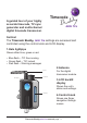 ddy Bu:mini trx Timecode A guided tour of your highly accurate timecode, TV sync generator and multi-channel digital timecode transceiver. ® Control The Timecode Buddy: mini trx settings are accessed and controlled using the control knob and LCD display. 1.Halo lightpipe Glows either blue, green or red. • Blue flash – T/C free running • Green flash – T/C locked • Red flash – Warning messages 2.Antenna Antenna Halo lightpipe For the digital transceiver module Control knob 3.