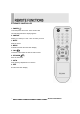 B. REMOTE CONTROLLER 1. POWER( ) Turns the power ON or OFF. There will be a few seconds delay before the display appears. 2. SOURCE Select pc or video( PC / AV1 / AV2 / S-Video ) sources. 3. MUTE Mute the sound. 4. MENU Activates and exits the On Screen Display. 5. VOL( ) Increases or decreases the level of audio volume. 6. UP/DOWN( ) Move to OSD menu. 7. AUTO Auto geometry adjustment in PC Source. 8. EXIT Exit the On Screen Display.