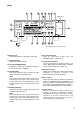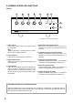 3. NOMENCLATURE AND FUNCTIONS [Front] 5 6 7 8 9 3 MIC TEL PROGRAM AUX MODULE SIGNAL 4 PEAK POWER 2 0 10 0 10 0 10 0 10 0 10 ON OFF 1 INTEGRATED AMPLIFIER BG-1120 This figure represents the BG-1120. 1. Power switch Press to turn ON the power. Press again to turn the power OFF. Note Amplifier operation is enabled about 3 seconds after the power switch is pressed. 5. Microphone input volume control Adjusts the microphone input volume.