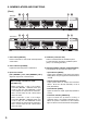 [Rear] 6 7 8 9 9 6 7 8 9 9 10 11 10 DA-550F 12 11 DA-500FH 12 6. AC inlet Connect the supplied power cord to this inlet. The socket-outlet shall be installed near the equipment and the plug (disconnecting device) shall be easily accessible. 7. Control/Monitor terminals [CONTROL/MONITOR] Connecting external equipment to these terminals makes the control and monitor functions available for channels 1 – 4 individually. (See p.15; How to Use the Control/Monitor Terminals.) 8.