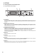 [Rear] 24 17 18 19 20 21 17. Power switch Turns on and off the power. Tip: The Power indicator (1) is located on the front panel. 18. AC inlet Connect this inlet to the AC wall outlet using the supplied power cord. 19. Functional earth terminal Hum noise may be generated when external equipment is connected to the unit. Connecting this terminal to the functional earth terminal of the external equipment may reduce the hum noise. Note: This terminal is not for protective earth. 20.