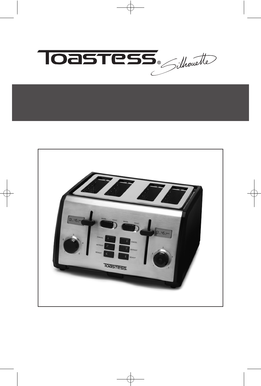Booklet_TT-522_ENG.qxd:Salton Booklet 6/18/09 2:06 PM Page 4 DESCRIPTION OF PARTS 1. Cancel Button and Light 2. Defrost Button and Light 3. Reheat Button and Light 4. Bagel/Toast Slide Control 5. LCD Display Window 6. Browning Control Knob 7. Carriage Control Lever 8. Removable Crumb Tray 9. Slot 1 10. Slot 2 11. Slot 3 12.