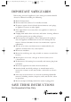 TMR_B604AB,ABCAN,AR,ARCAN_IB 3/16/06 2:38 PM Page 3 CAUTION: This appliance is hot during operation and retains heat for some time after turning off. Always use oven mitts when handling hot materials and allow metal parts to cool before cleaning. Do not place anything on top of the Toaster while it is operating or while it is hot. CAUTION: ◆ DO NOT toast pastries with runny fillings or frosting. ◆ DO NOT toast torn slices of bread. ◆ DO NOT place buttered bread or wrapped food into the Toaster.