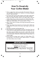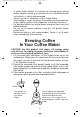 ME8TPB,PW,PBS,SW,SB,PWCAN_IB_Cr 12/1/04 1:49 PM Page 10 How To Decalcify Your Coffee Maker 1. Place a paper filter into the removable filter basket. Make sure the removable filter basket fits securely so Lid closes properly (Lid will snap into place). 2. Fill carafe with one part white vinegar to three parts cold water. Pour the water and vinegar solution into the water reservoir. 3. Place the empty thermal carafe on the base plate. Plug the Coffee Maker into an outlet and switch the Coffee Maker ON. 4.