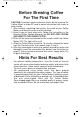 ME8TPB,PW,PBS,SW,SB,PWCAN_IB_Cr 12/1/04 1:49 PM Page 6 • A clean Coffee Maker is essential for making great tasting coffee. Regular cleaning, as specified in the User Maintenance Instructions, is highly recommended. • Always use fresh, cold water in your Coffee Maker. • Store coffee in a cool, dry place. Once coffee has been opened, keep it tightly sealed in the refrigerator to maintain freshness. • For optimum coffee, buy whole beans and grind them finely just before brewing.